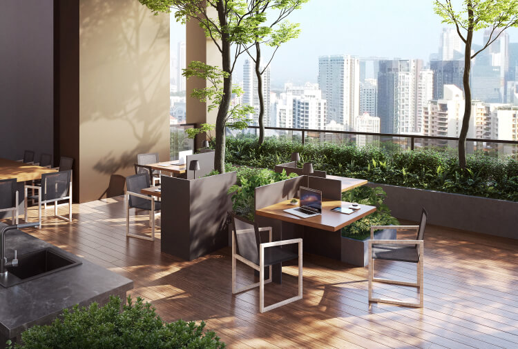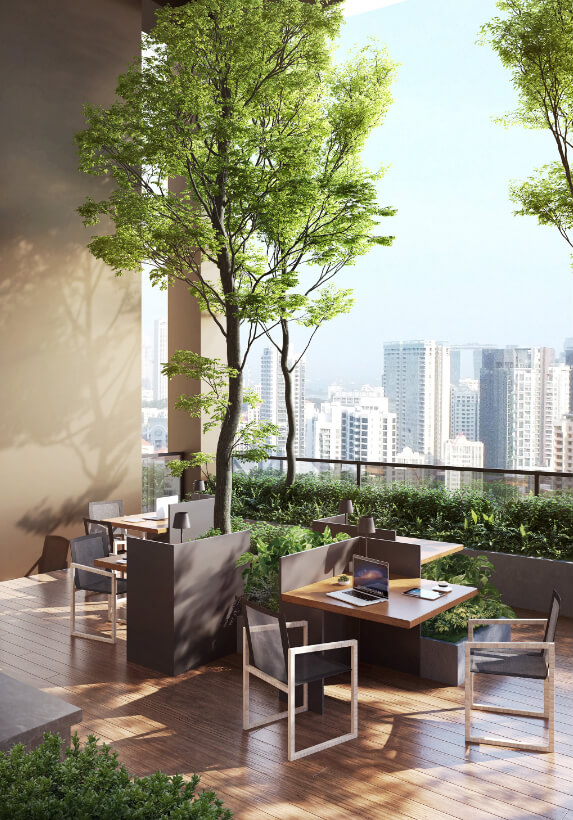 At Level 24 of both towers, Vista Co-Work is a purpose-designed space reserved for residents to work without leaving home. Here, the bespoke workstations are equipped with WiFi, charging points, and a view of the sky framed by the greenery. This is working from home, redefined. At night, the Vista Gourmet transforms into an entertaining and hosting venue that affords all with a panorama of picturesque nightscapes.